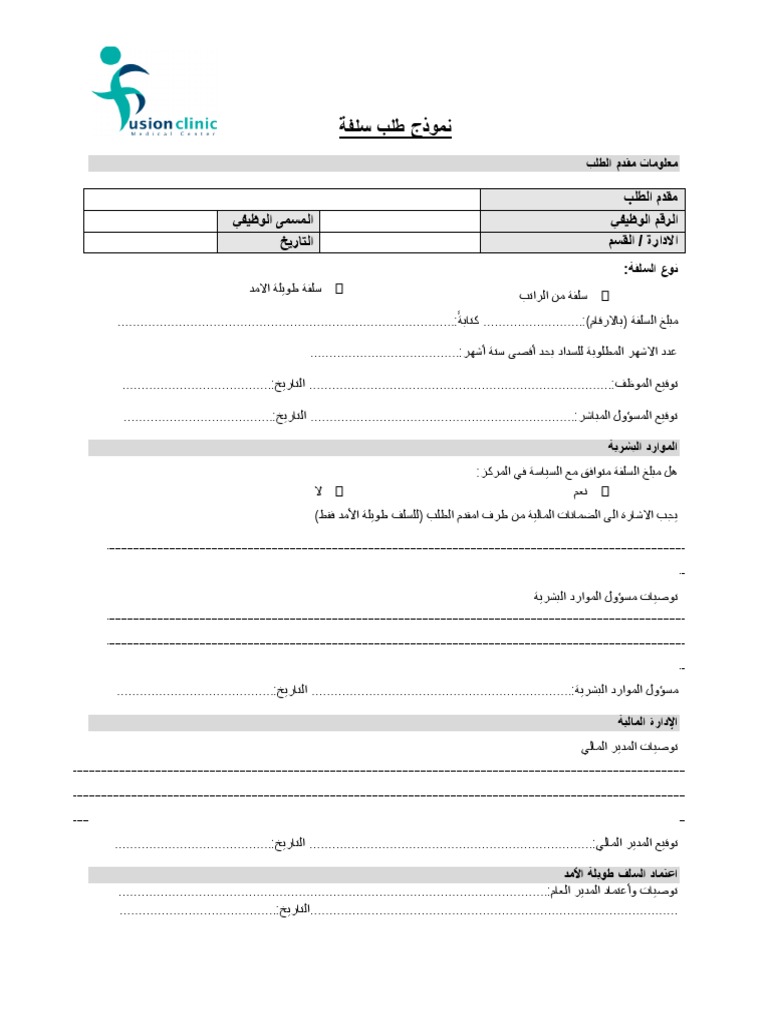 السلف نموذج طلب سلفة مالية من الشركة